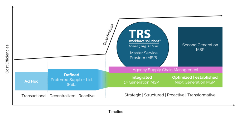 TRS Workforce Solutions utilizes proven procurement best practices, real-time data and analytics, time served expertise, and a hands-on personalized approach to successfully manage your agency supply chain.